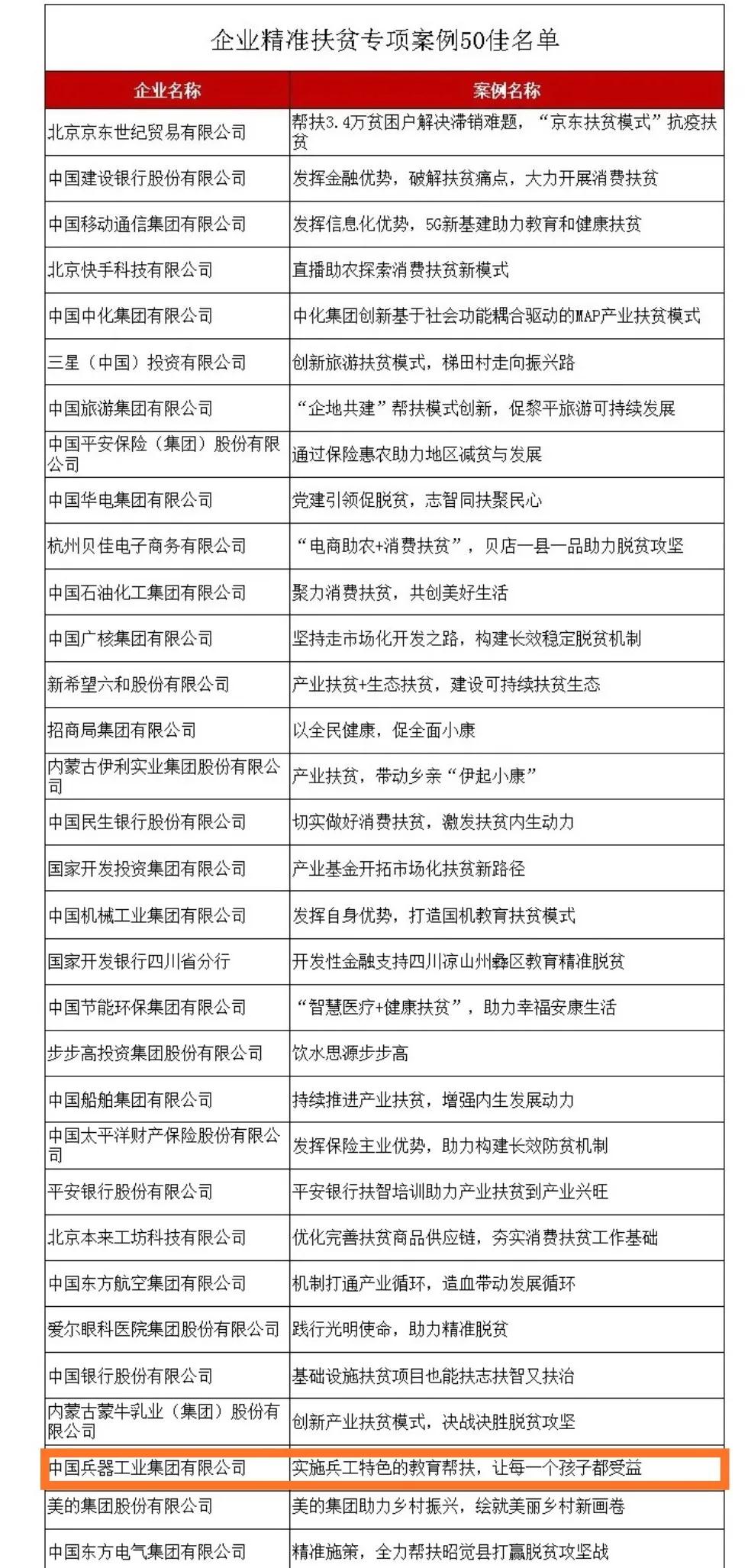 近日,國務院扶貧辦發布2020年企業精準扶貧案例獲獎名單,中國兵器工業集團有限公司《實施兵工特色的教育幫扶,讓每一個孩子都受益》案例入選2020年企業精準扶貧專項案例“50佳”。