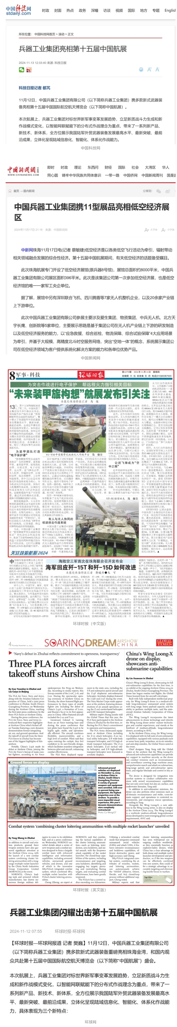 備受矚目!各大媒體廣泛報道兵器工業集團參展第十五屆中國航展